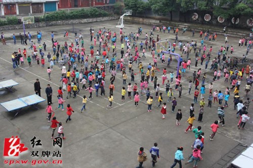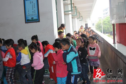 图:师生迅速撤离到安全地带