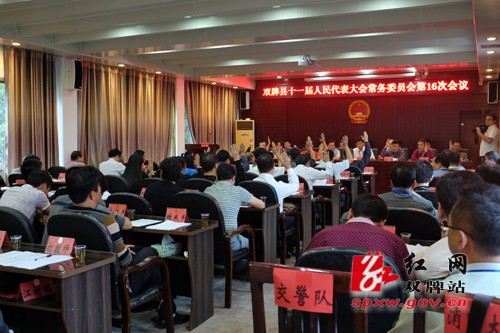 会议听取并审议通过县人民政府关于G207线异蛇山庄至双牌工业园段路基路面加宽和增加财政预算的议案;听取并审议通过县人民政府关于代表议案、建议、批评、意见办理情况的报告;听取并审议通过县人民政府关于城乡规划法执法检查后续整改情况报告,学习了习近平总书记在庆祝全国人民代表大会成立60周年大会上的讲话。