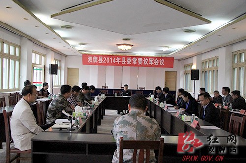 会上,县人武部部长周华汇报了今年以来我县武装工作和后备力量建设情况。并就落实党管武装相关制度、随军家属就业安置、武装工作经费、营院搬迁等问题提请会议研究。去年议军会以来,在市军分区党委和县委、县政府的正确领导下,武装工作保持稳步发展的良好局面。聚焦强军目标,军地形成齐抓共管合力。着眼应急应战,后备力量实现转型发展。投身强军实践,遂行任务能力持续增强。