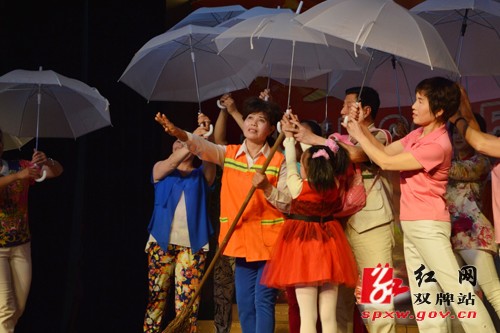 晚会在少儿舞蹈《天地喜洋洋》中拉开序幕,快板《创文创森就是好》、女声小组唱《阳明山的竹林多么美》、小品《选择》等原创节目贴近实际、积极向上,歌舞《咱农民的胸怀比天地宽》、情景舞《接送》等节目贴近群众、聚焦生活。晚会分为“生态双牌、活力双牌、自信双牌”三个篇章,以喜闻乐见的形式反映出了双牌县的发展变化和全县人民奋发求新的精神状态,赢得了现场观众的阵阵掌声。(王微)
