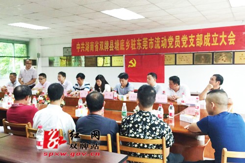 下午2点30分,双牌县塘底乡驻东莞流动党支部成立大会在东莞市道滘镇南城村村委会议室隆重召开。东莞市道滘镇南城村党工委书记黄近居以及塘底乡在广东创业的流动党员代表等20余人参加了会议。
