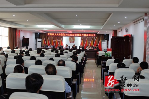 本网讯 10月27日,县人大常委会对任命法官履职考核动员大会在双牌法院召开,县人大常委会副主任袁小爱、邓明义及调查组工作人员等参加大会。