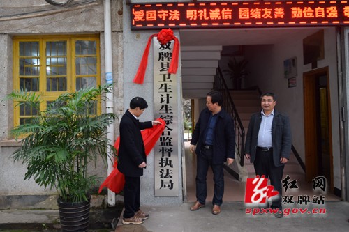 本网讯 11月30日,双牌县卫生和计划生育委员会正式挂牌成立。县委副书记李瑛,副县长付康成出席揭牌仪式。