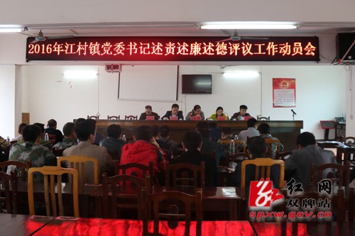 本网讯 (通讯员 茶璐娟)11月21日上午9点,江村镇党委书记述责述廉述德评议工作动员会在镇政府四楼会议室召开。
