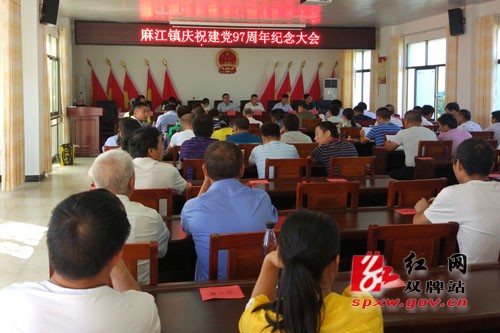 本网讯 6月28日上午,麻江镇召开了庆祝建党97周年纪念大会。镇党委委员、全体机关党员、各村“两委”班子及党小组组长中的党员、镇卫生院党员90余人参加会议。