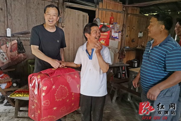 本网讯 (通讯员 义成玉)“昨天你们才问我生活上有什么困难或一些小心愿需要满足的,今天就帮我把棉被和大米送过来了!真是辛苦你们了。”江村镇一贫困户拿着被子已笑得合不拢嘴。