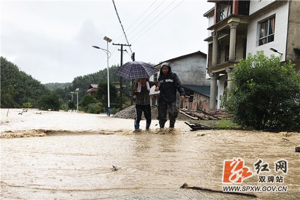本网讯 7月13日上午11点,何家洞镇贤水河河水暴涨,强降雨引发了泥石流,何家洞村刘家洞片3组10户居民受屋前河水和山后泥石流的双面夹击。何家洞镇政府迅速组织人员赶赴现场,紧急转移被困群众32人,其中一位留守老人不愿离开,守着被水漫进半米多深的家里,经过镇干部与村干部的多番劝说,老人终于被安全转移到集镇上。