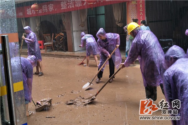 为给往来群众制造一个舒爽的环境,14日一早,双牌县人社局全体干部职工响应县委、县政府号召,放弃周日休息时间,积极开展灾后环境整治。大家冒着大雨,拿着铁铲、竹扫帚、锄头等工具轮番上阵,清除垃圾、冲洗地面、清洁办公设施。