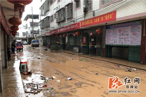 本网讯 (通讯员 唐强林)7月14日,“围困”双牌县人社局一天一夜的洪水已经悄然退去,给大家留下的是一片狼藉的街道,被水泡过的桌椅横七竖八,各类生活垃圾塞满路面,厚厚的淤泥臭味刺鼻,严重影响行人和车辆来往。