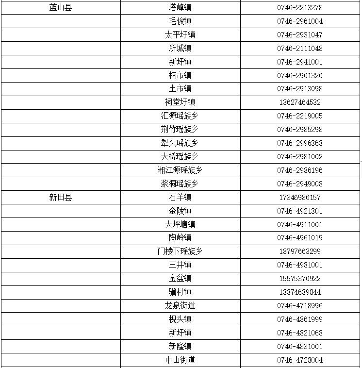 永州市各乡镇(街道)值班电话