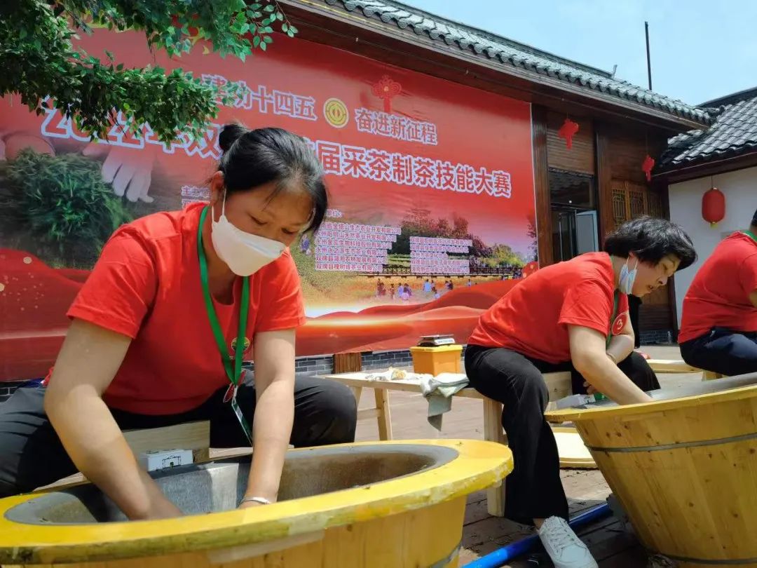 本网讯 (双牌融媒记者 盘春红 通讯员 李庆石)5月2日,双牌首届采茶制茶技能大赛第二阶段制茶技能赛在泷泊·国际慢城花千谷景区举行,20名手工制茶师傅现场比拼,吸引游客前往观赛,体验赏茶、品茶乐趣。市总工会党组书记、副主席乐家茂,县领导张跃斌、雷安术、陈首文、石婧出席开幕式,并现场观摩比赛。