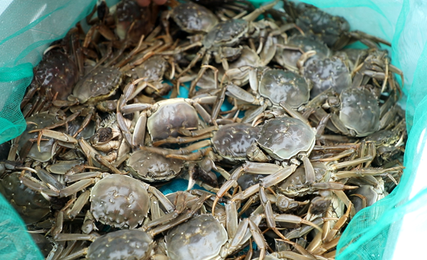 从事大闸蟹养殖销售十余年的商户朱老板,今年是首次参与双牌年货节。他表示:“我们从江苏宿迁过来,每天带来1000斤左右的大闸蟹,销量非常好,不到半天就卖得差不多了。”