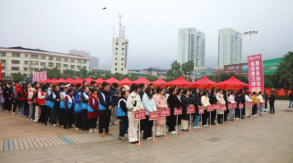本网讯 (双牌融媒记者 叶林东 通讯员 汤翔)2月13日上午,以“春风送岗促就业 真情相助暖民心”为主题的双牌县2026年春风行动启动仪式暨就业援助季专场招聘会在县滨江广场举行,30家重点企业代表与千余名求职者齐聚现场,共赴这场就业“春风之约”。县领导李华林、潘艳超出席启动仪式。