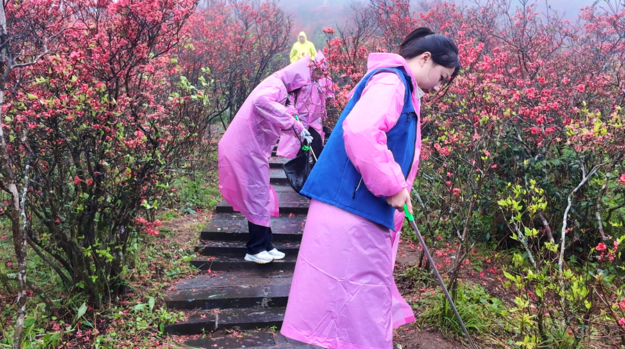 仪式后,“文明赏花·洁净花海”志愿服务同步开展。志愿者走进杜鹃花海,开展垃圾捡拾、文明劝导、环保宣传等服务,用行动守护生态美景,引导游客文明出游。