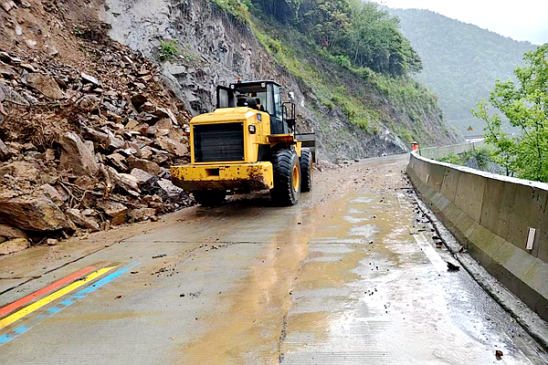 人机协同作战,高效抢通 “生命线”。抵达现场后,抢险队伍迅速布设安全警示标识、划定作业禁区,疏导滞留司乘。此次垮方土石混杂、清理难度较大,队员们协同发力,挖掘机精准挖运、装载机高效转运,人工同步清扫边角、排查危石,历经2小时奋战,全部垮方清理完毕,道路恢复正常通行。