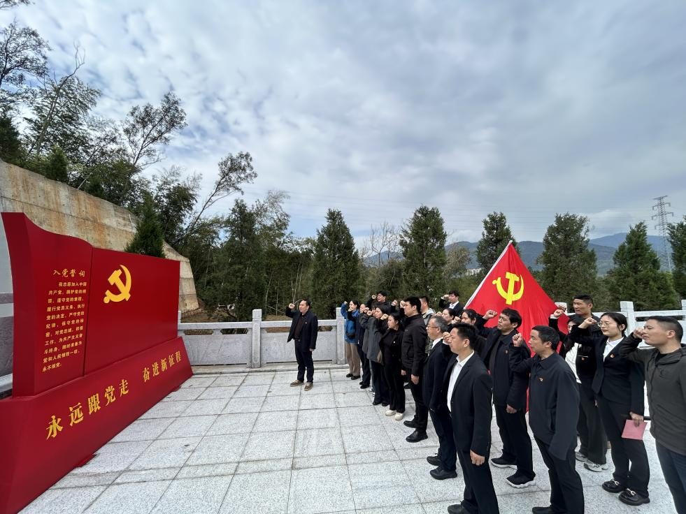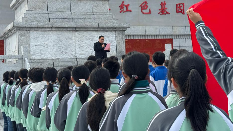 师生们身着整洁服装,在纪念碑前庄严肃立。学校党总支书记熊和平带领大家回顾革命先烈抛头颅、洒热血的峥嵘岁月,勉励全体师生铭记历史、不忘来路,将缅怀之情转化为奋进之力,以实际行动传承红色精神、勇担时代使命。团员学生唐颜代表全体团员青年承诺:“将传承革命先烈的崇高精神,牢记青春使命,勤奋学习、锤炼品格,争做有理想、敢担当、能吃苦、肯奋斗的新时代好青年。”随后,全体师生低头肃立默哀,寄托对革命先烈的深切缅怀与崇高敬意。默哀毕,大家依次缓步走向纪念碑,献上鲜花、深深鞠躬,并有序瞻仰烈士纪念碑、参观烈士事迹墙。活动中,党员教师、团员学生分别重温了入党誓词、入团誓词。