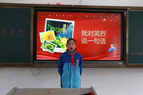 本网讯 (双牌融媒记者 叶林东 通讯员 蒋巧云)近日,双牌县泷泊镇第一完全小学开展“清明祭英烈”主题队会活动,创新采用网上祭英烈的绿色文明方式,带领少先队员们云端寄哀思,致敬革命先烈。