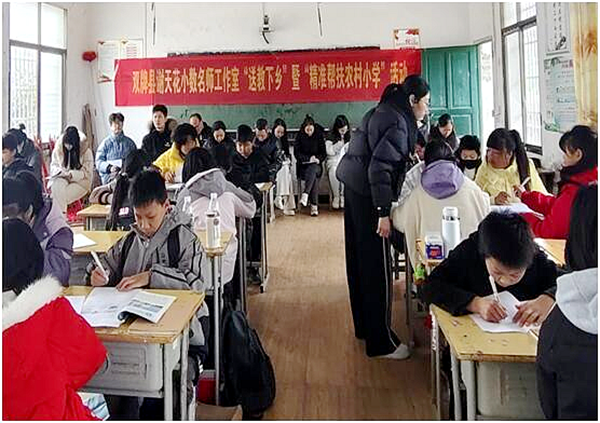 本网讯(通讯员 盘海军 谢天花 陈景凤)近日,双牌县谢天花小学数学名师工作室团队赴理家坪乡中心小学开展“精准帮扶,助学乡校”主题活动,以优质教育资源为乡村学子的期末复习之路点亮明灯。
