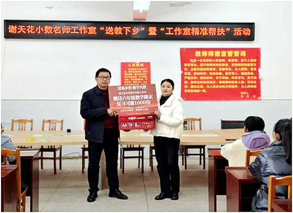 授课结束后,工作室团队向理家坪乡中心小学师生赠送1000份精心编制的六年级数学期末复习资料,为学子们送上精准高效的复习 “导航图”。