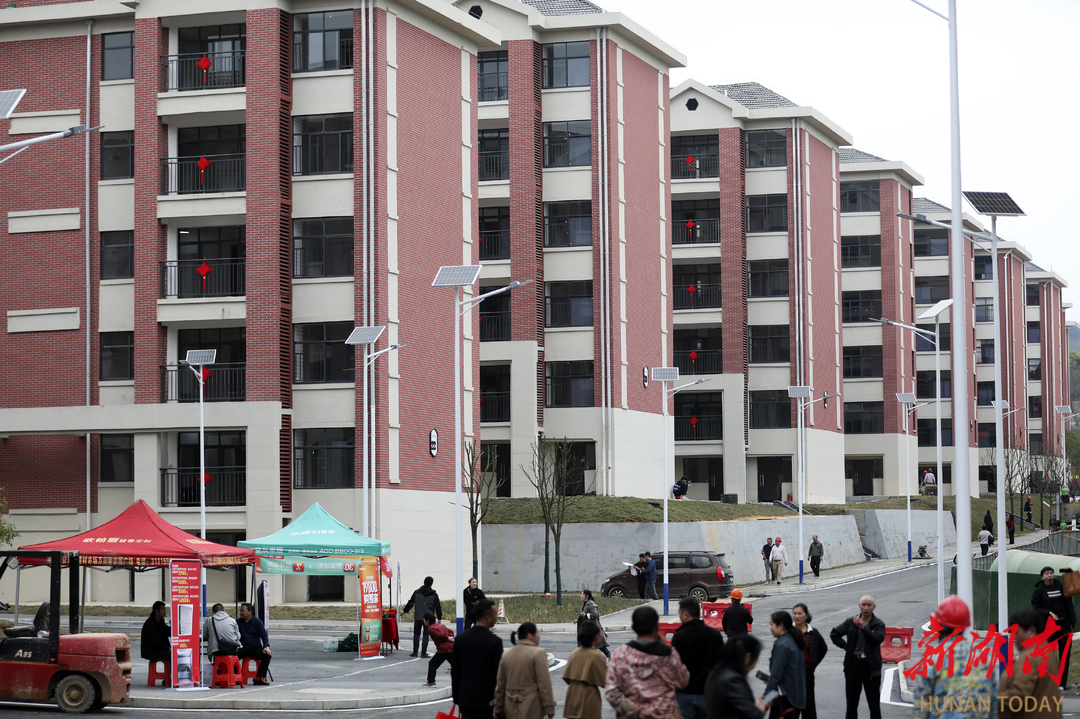 4月7日,资兴市兴宁镇集中安置点二期,安置户在领取新房钥匙后看房。 李科 摄(湖南图片库)