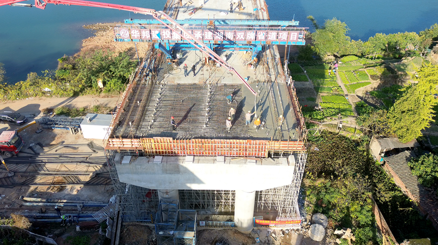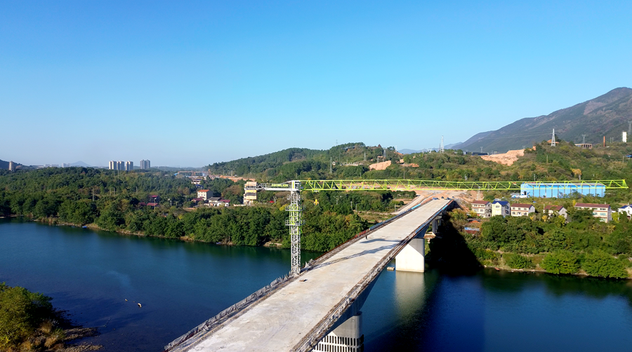 双牌潇水二桥项目施工方总工程师张国伟介绍:“主桥合龙施工从5号墩逐跨向9号墩推进,施工过程中我们严格把控每一段连续梁的整体结构稳定性与施工安全,确保合龙质量符合设计标准。”