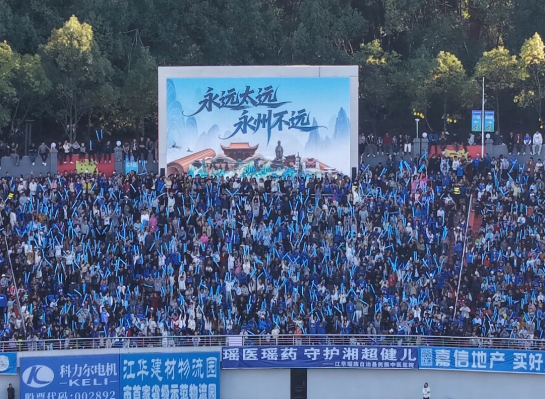 本网讯(通讯员 盘海军)近日,2025年“湘超”第11轮、第12轮赛事落幕。永州队连续鏖战负于娄底队和常德队,未能延续胜势。然而赛场暂时失利并未消减球迷热情,尤其在教育战线,广大师生球迷始终秉持“爱你一如既往”的初心,将球队“永冲锋”的拼搏精神转化为推动校园体育发展的强大动力。